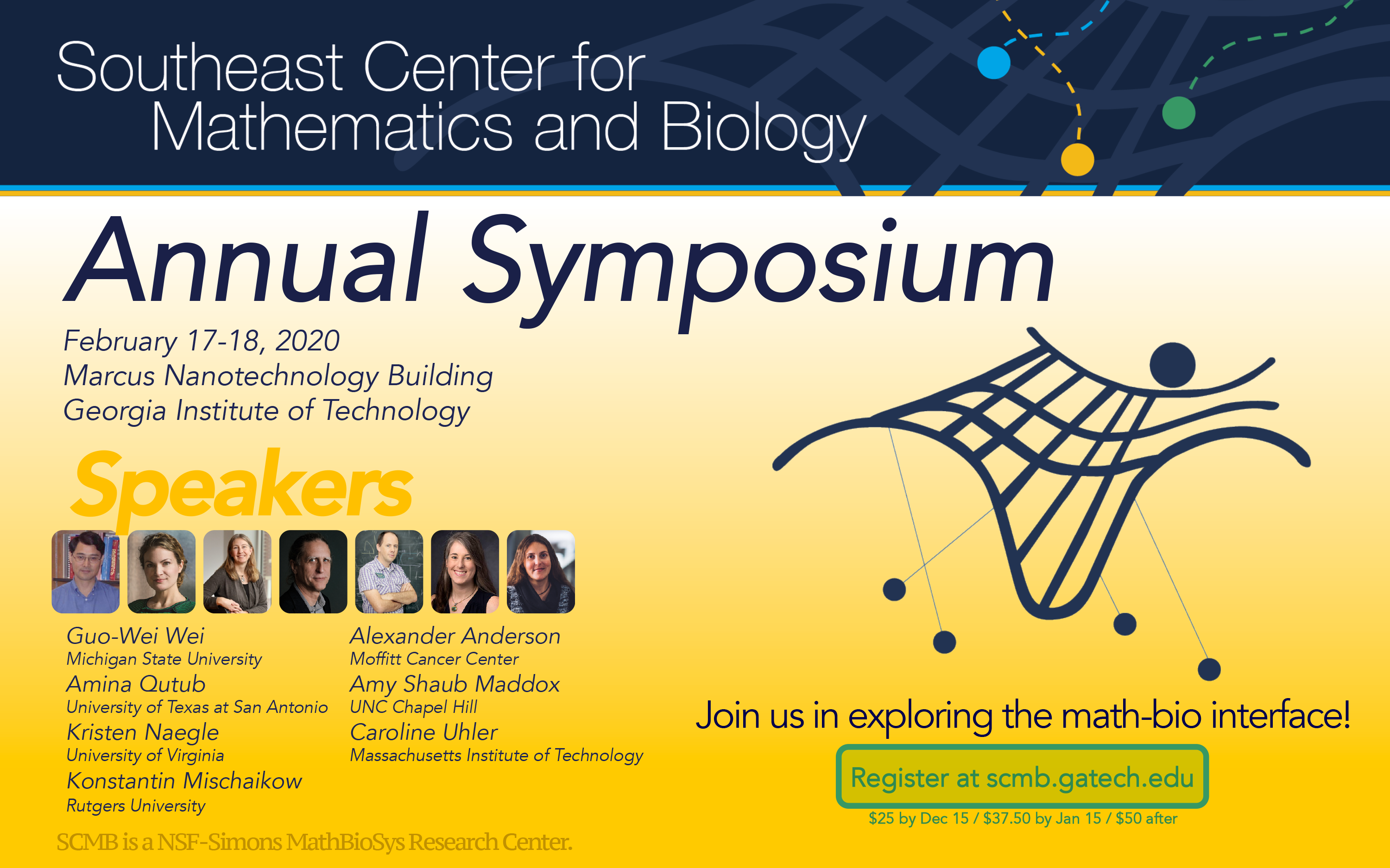 SCMB has funding to partially support participants, and priority in allocation will be given to graduate students, postdocs, and junior researchers, including tenure-track faculty, and especially to those who are presenting posters. If funding allows, we may be able to fund additional participants. For more information, see scmb.gatech.edu/symposium/additional-information.