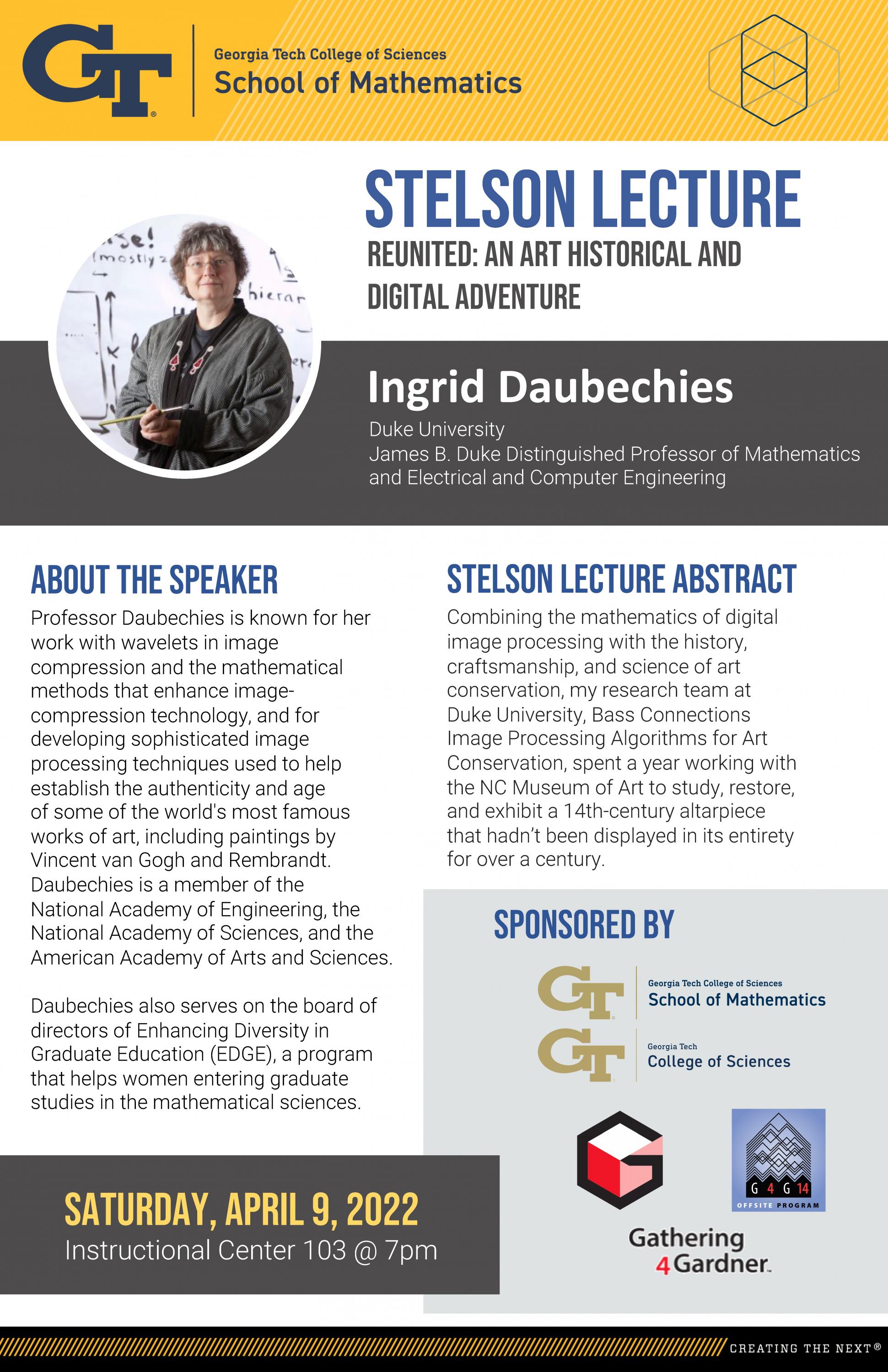 Combining the mathematics of digital image processing with the history, craftsmanship, and science of art conservation, my research team at Duke University, Bass Connections Image Processing Algorithms for Art Conservation, spent a year working with the NC Museum of Art to study, restore, and exhibit a 14th-century altarpiece that hadn’t been displayed in its entirety for over a century.