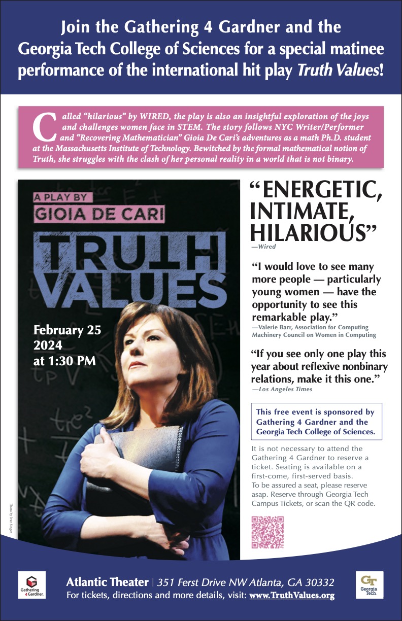 Join the Gathering 4 Gardner and the Georgia Tech College of Sciences for a special matinee performance of the international hit play Truth Values!